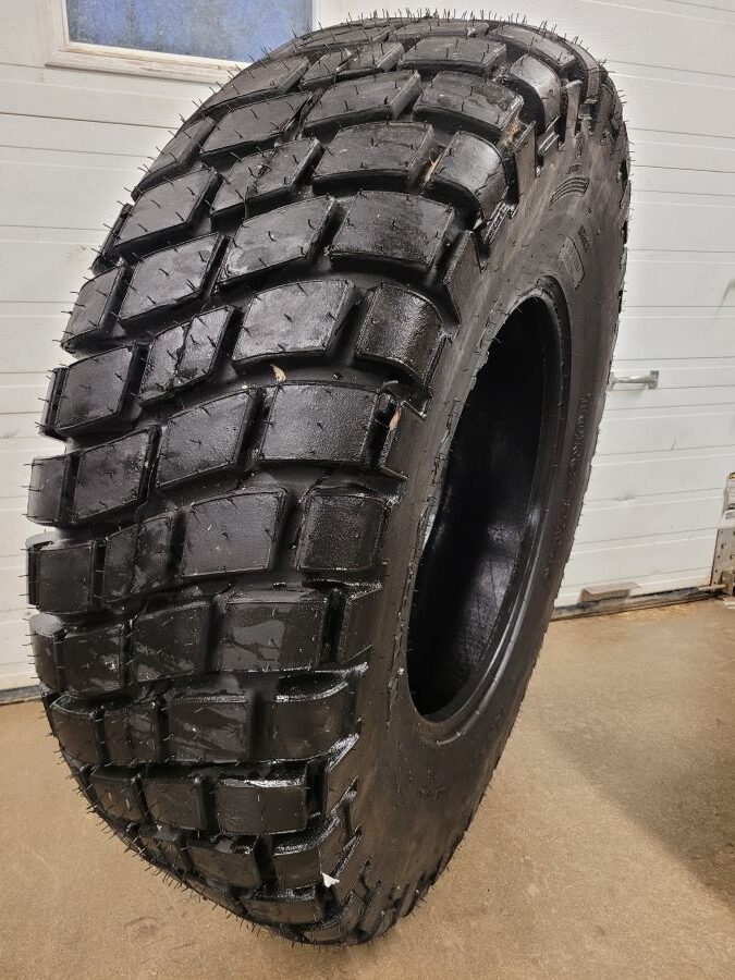 - Minimizes ground disturbance with its wide, flat footprint and deep grooves