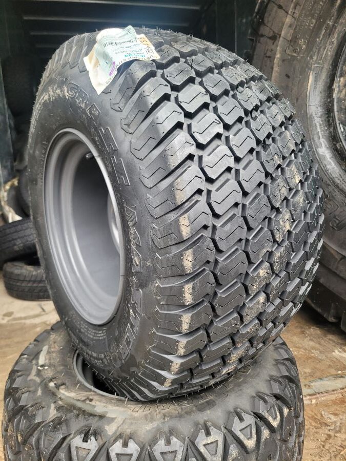The OTR Grassmaster tire is designed with a long wear rubber compound and a high traction tread that is gentle on lawns. The OTR Grassmaster tire is available with a 2 or 4-ply rating in most sizes so you have the option depending on your need for extra load capacity and durability.