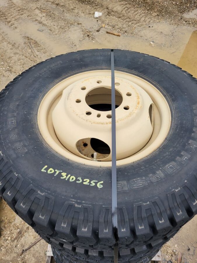 Mounted and inflated on 16″ x 6″ Dual wheel Conventional Style Trailer Rim