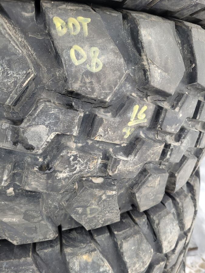 set of 5 tires, DOT’s 2007-08, used with tread depth measure 11/32, 12/32, 14/32, 14/32, 16/32, overall most of them are clean, couple would have dry spots with in the treads, look up pictures